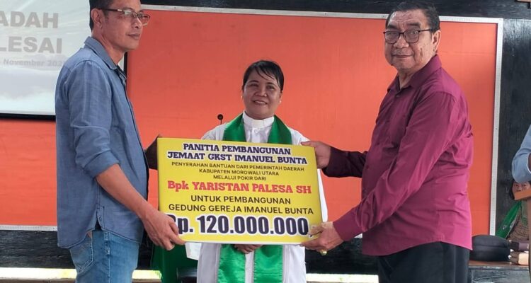 Yaristan Palesa Serahkan Bantuan Rp120 Juta untuk GKST Immanuel BuntaBerita, Ekonomi & Pembangunan, Inspirasi, Lensa Warga, Morowali Utara, Sulawesi Tengah|16 November 202516 November 2025oleh adminMorowali Utara — Pemerintah Daerah Kabupaten Morowali Utara melalui pokok pikiran anggota