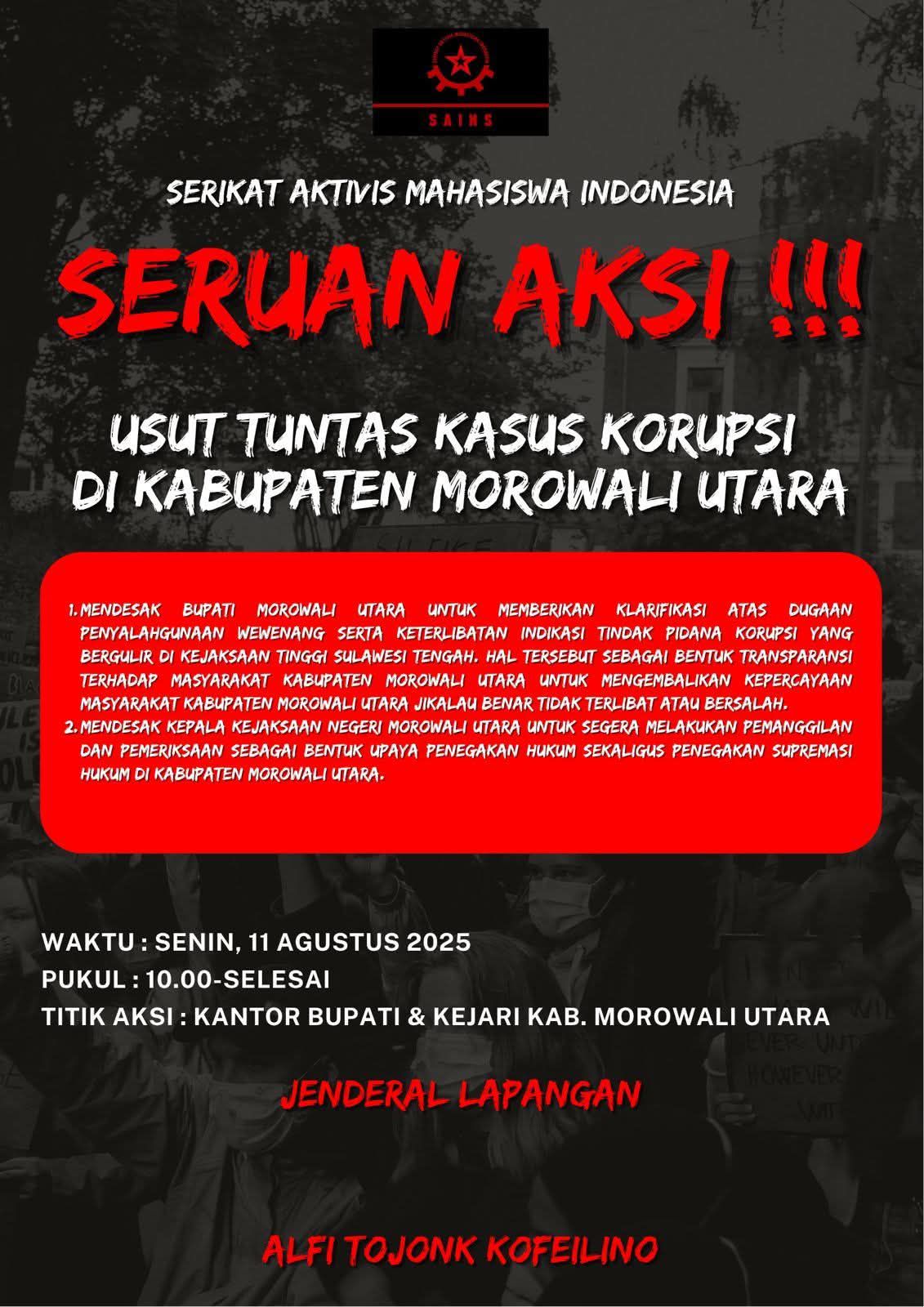 Aksi yang mengatasnamakan Serikat Aktivis Mahasiswa Indonesia itu rencananya digelar mulai pukul 10.00 WITA, dengan titik kumpul di Kantor Bupati Morut dan Kantor Kejaksaan Negeri Morut. Namun, rencana tersebut justru menuai penolakan keras dari sejumlah elemen pemuda dan organisasi lokal.