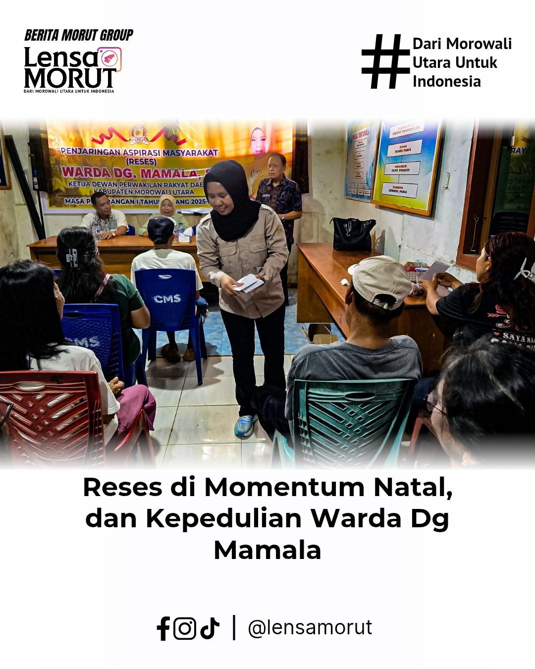 Namun lebih dari sekadar menyerap aspirasi, reses kali ini juga menonjolkan sisi kepedulian sosial Ketua DPRD Morut. Di tengah keterbatasan anggaran reses, Warda Dg Mamala menunjukkan empati dengan membagikan minuman Natal kepada warga Nasrani yang hadir dan merayakan Natal.